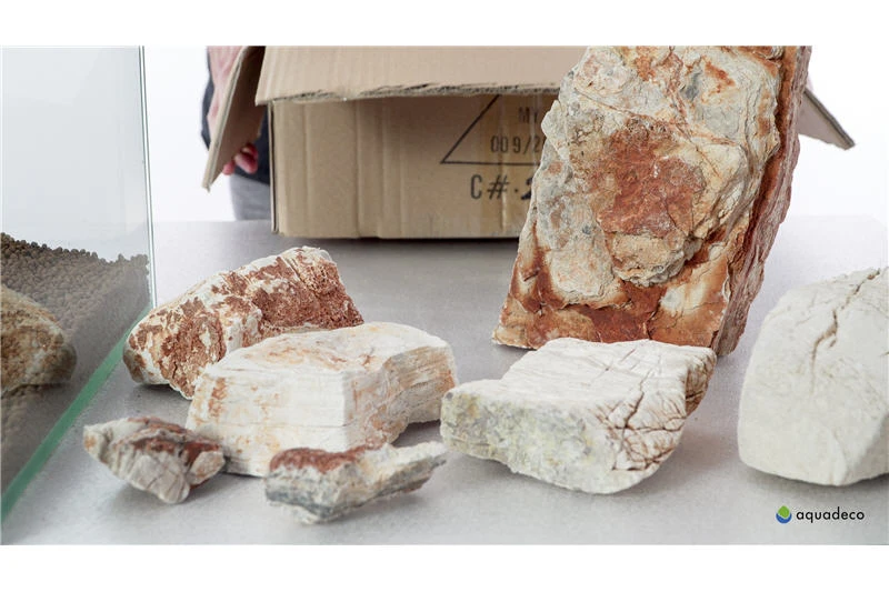 Tolles, interessant geformtes Dekorationsgestein in hellen Braun- Beige- und Rosttönen für Süsswasser-Aquarien und Terrarien. Die Form der Steine erinnert an Canyons oder den Ayers Rock. Das praktische Set enthält genügend Steine um ein 60 cm Becken perfekt zu dekorieren, die Anzahl der Steine kann dabei je nach Größe der Einzelstücke variieren.