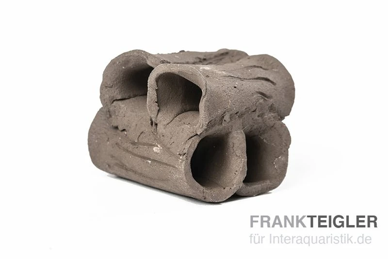 Der tönerne Röhrenturm aus dem Hause Aquariumkeramik ist aus 4 Röhren gefertigt. Eine jede der gebrannten Röhren verfügt über eine Länge und ungefähr 6 – 7 cm bei einem Durchmesser von zirka 1,5 cm. Bei der Herstellung wurde ein sogenanntes Schlickverfahren angewandt, was die zusätzliche Verwendung von Klebstoff unnötig macht.