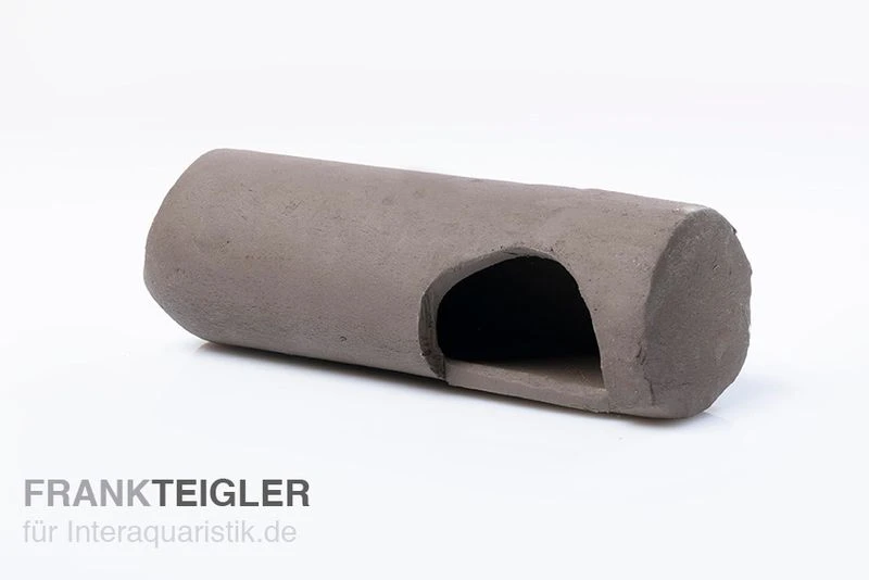 Die tönerne Welshöhle mit integriertem Seiteneingang aus dem Hause Aquariumkeramik besitzt eine Länge von ungefähr 19 cm. Der Seiteneingang ist ungefähr 6 cm breit bei einem Durchmesser von 5,5 cm.