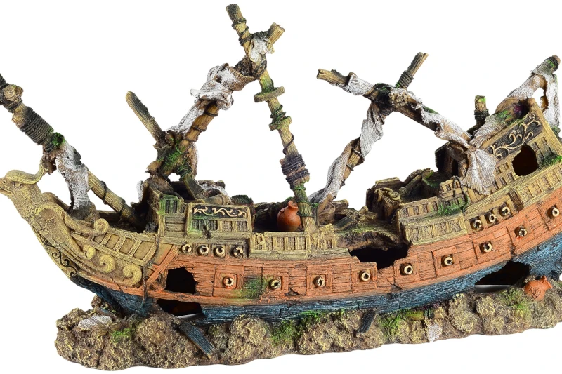 Diese schöne versunkene Schiff der Marke Aquatlantis zaubert eine Unterwasserwelt in Ihr Becken.