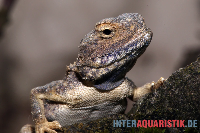 Der Bodengrund im Terrarium sollte sandig sein, um die natürliche Umgebung nachzubilden. Klettermöglichkeiten wie Äste und Steine sind wichtig, da diese Agamen gerne auf Felsen und erhöhten Positionen sonnenbaden.